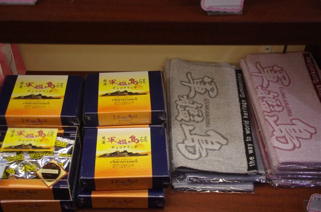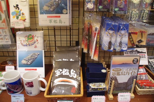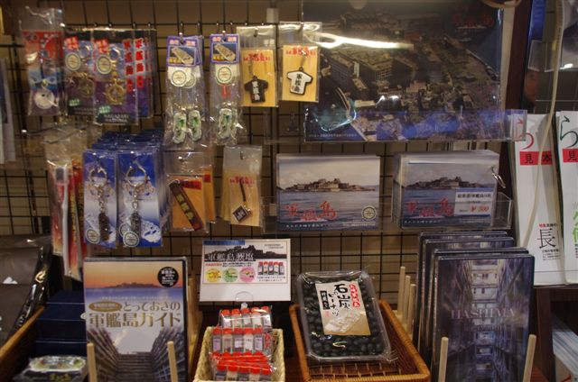 順次アップしますが、今日の写真は、市電乗り鉄を兼ねて小雨の長崎市内観光中、グラバー園の売店に並んでいた軍艦島関連みやげ品。