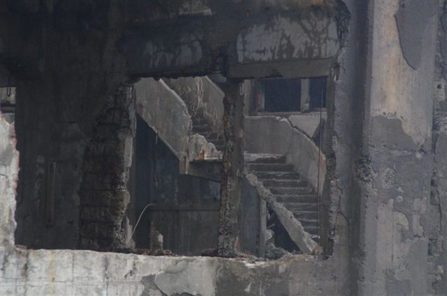 軍艦島の今は完全な廃墟です。