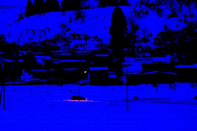 ぬくぬくの部屋の窓からガラス越しに、日没後の寒そうな雪景色を暫し撮影していると、啄木の『さいはての駅に下り立ち 雪あかり さびしき町にあゆみ入りにき』が頭に浮かんできます。