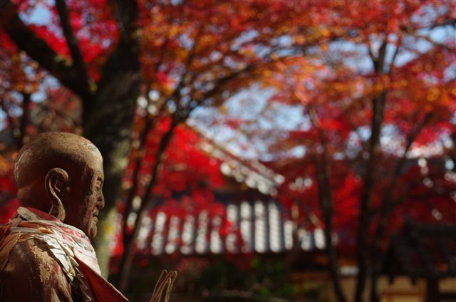 本堂の外では仏像のお爺さんが紅葉狩り。