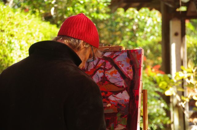 この多宝塔を、赤い帽子の外人さんが描いていました。