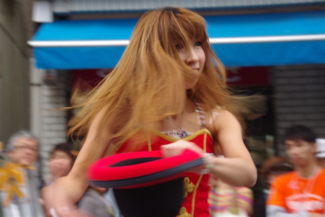 神輿の周りには人が多いので、その隙間から美人の担ぎ手を狙うのですが、手が邪魔で隣のオッサンが写ってしまうこともあります。