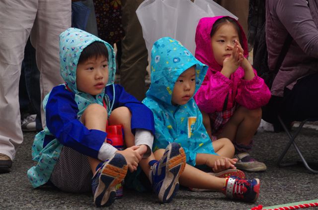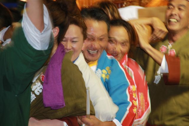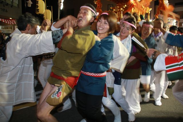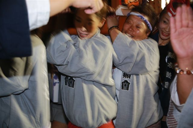 クライマックスまでは、まだおとなしく、この辺では観客も少ないので、神輿のすぐそばまで寄って撮影ができるし、こちらに目線をくれたりします。