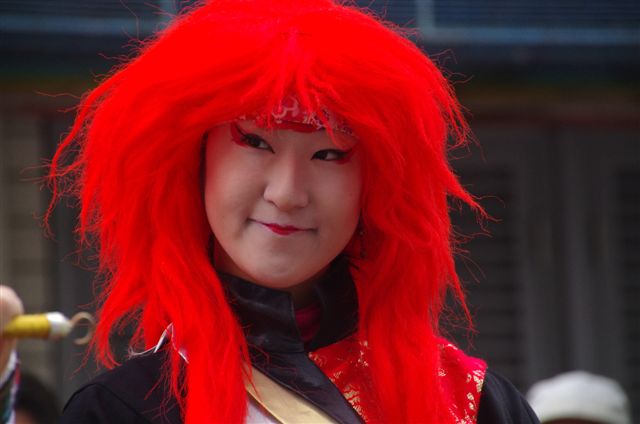 赤い手拭いの美人発見。