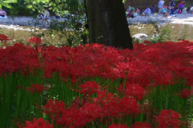 そんな人たちを背景に日陰の彼岸花。