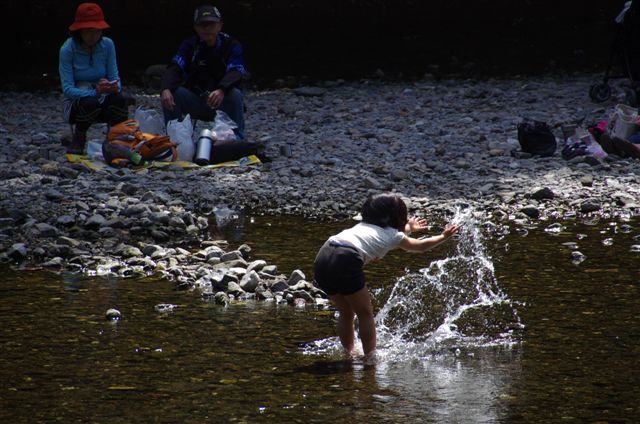 そこで両方を適正露出で写すのはあきらめ、カメラを三脚からはずして水遊びをする子供を撮ってみました。