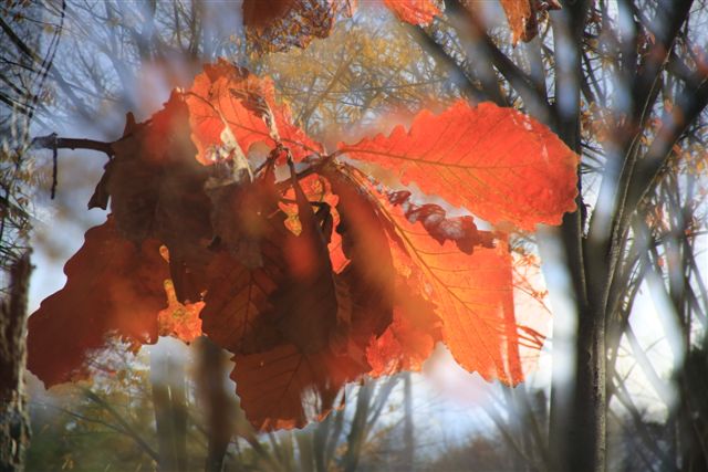 イチョウと桜はもうすっかり葉を落とし、モミジだけが頑張っています。