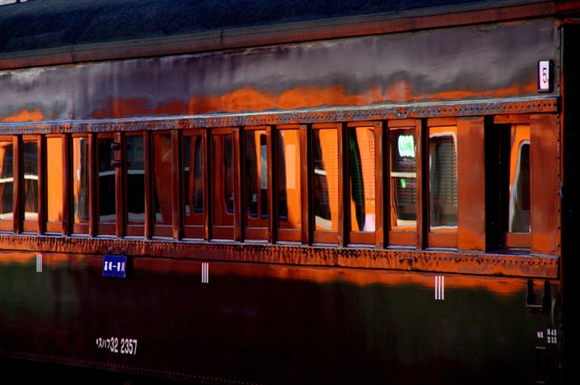 さてレトロ車輌といっても、当時はたぶん急行以上の列車に使われていた快適な車輌ですが、冷房はないので天井には扇風機、暖房はSLの蒸気を利用したスチーム暖房で、お尻の下から暖かくなってきます。