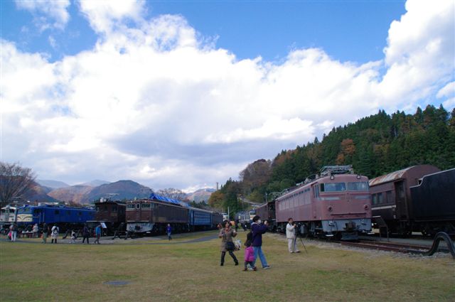 終点の横川駅で帰りの出番を待ちますが、横川駅にはターンテーブルがないので、復路はディーゼル機関車のDD51に引っ張られて逆向きで帰るという、なんともみっともない編成になるのです。