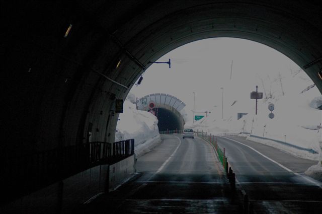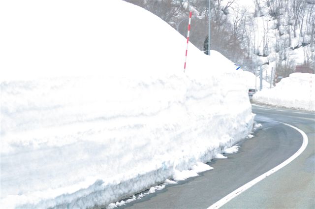 トンネルを出ても両側は雪の壁。