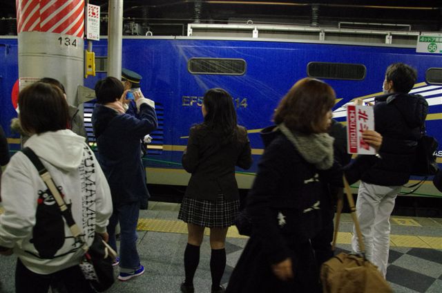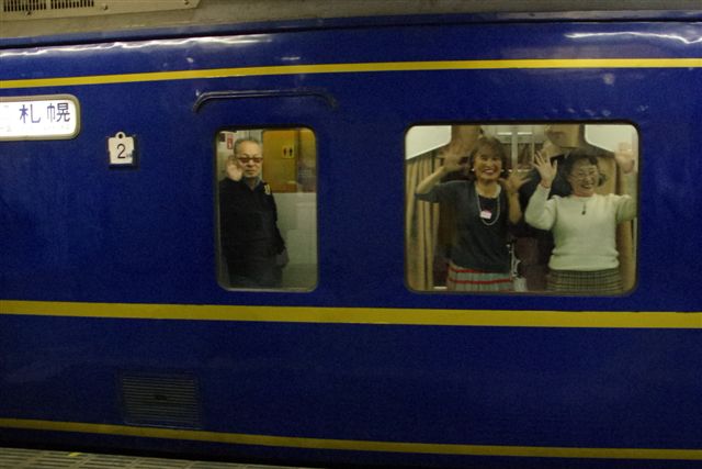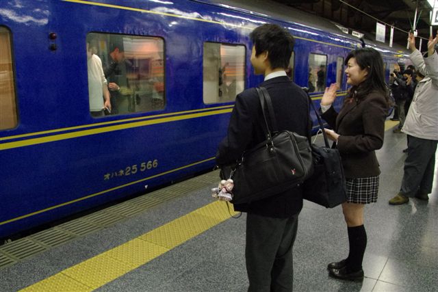 ボーイフレンドと一緒に、発車した北斗星をお見送り。