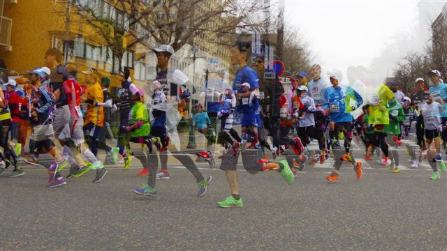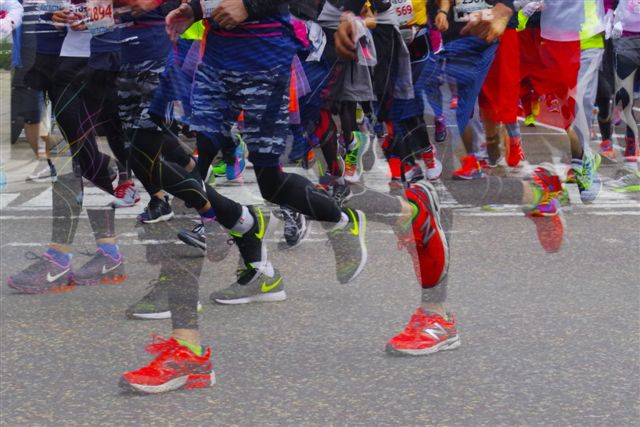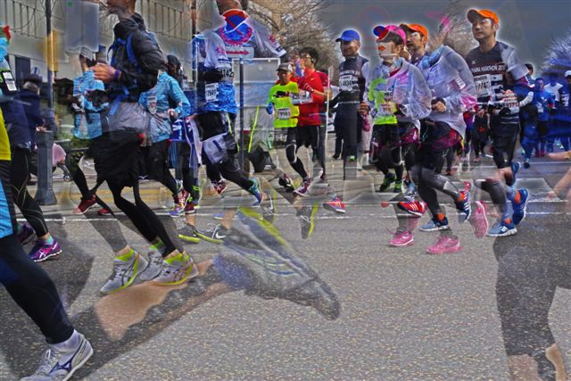 ゴチャゴチャと走ってくるランナーを、さらにゴチャゴチャとして、マラソンブームのイメージ写真にしてみます。