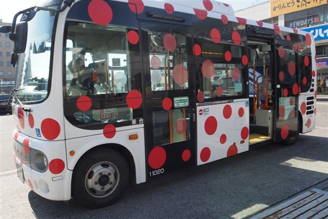 美術館までは駅からまっすぐ直線で2キロほどの距離ですが、タクシーで直行するのも芸がないので前回アップしたタウンスニーカーのバスで市内を軽く一周して美術館前で下車。