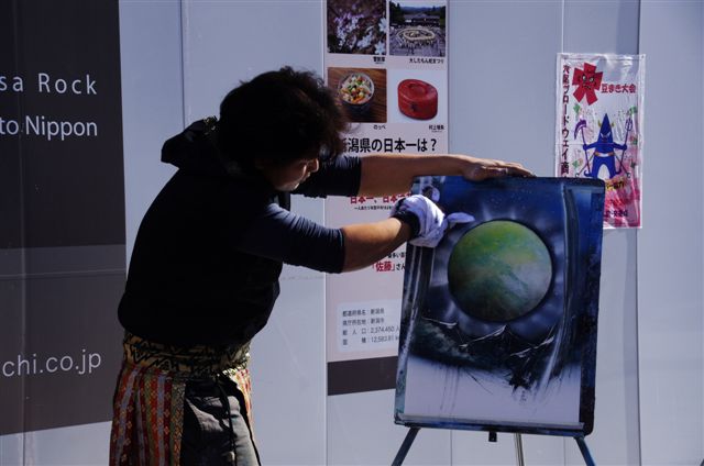 そんな地球をイメージして、大道芸のスプレー絵描き屋さんです。