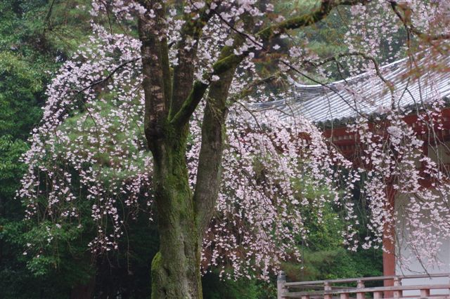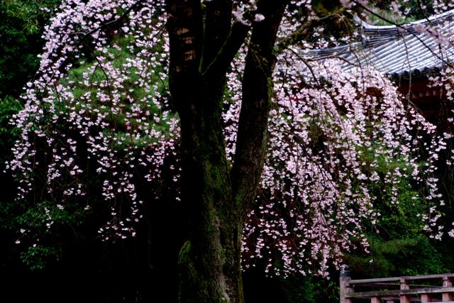 仁王門をくぐってまもなく、金堂の傍らに姿形のいい桜を見つけましたが、そのまま撮るとこんなふうに普通の写真になってしまいます。