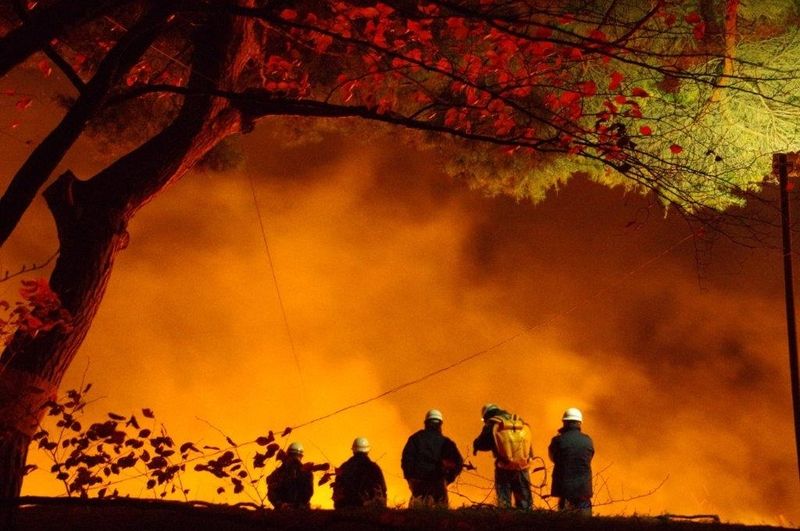 松明あかしの山が燃えるようなオレンジ色の煙をクリックしてど~ぞ!