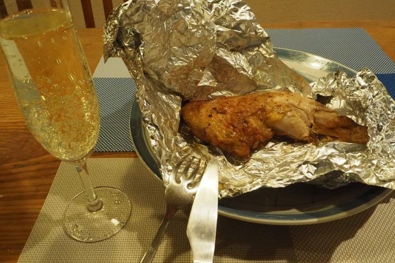 というわけで、手ぶらで戻ってくるのも何なので、1本700円のそれを買ってきて、ついでに近くでシャンパンを1本買って夕餉。