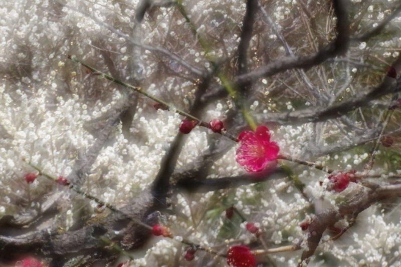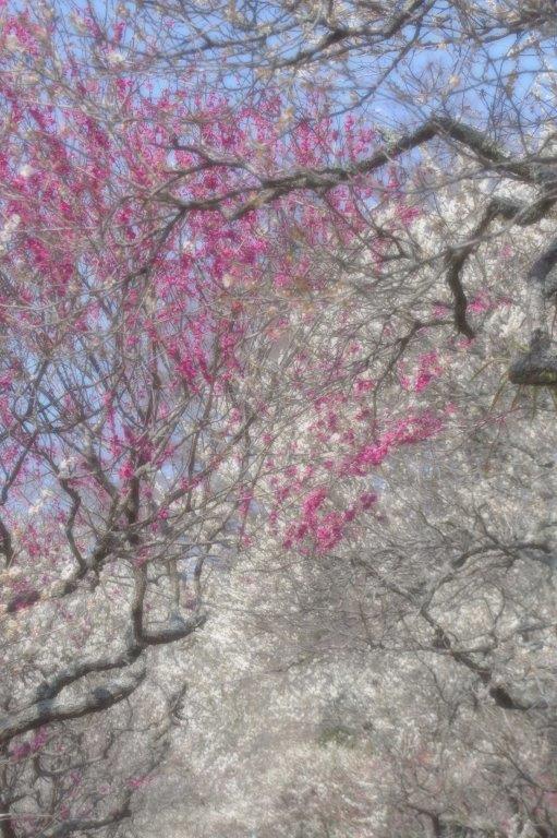 梅の花は近づいてクローズアップで撮るよりも、離れた位置からややソフトをかけてボリュームアップした写真の方がきれいです。