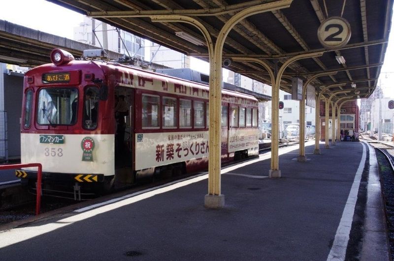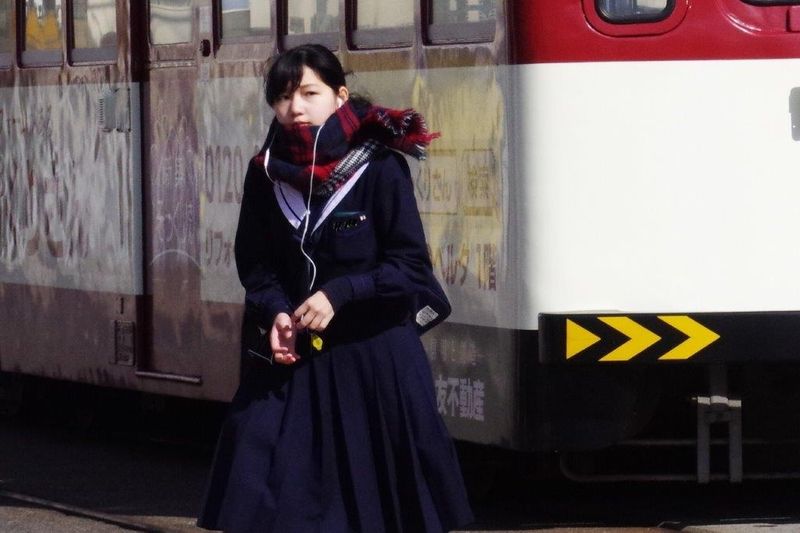 中学生でしょうか、路面電車に乗るのも彼女にとっては小さな旅。