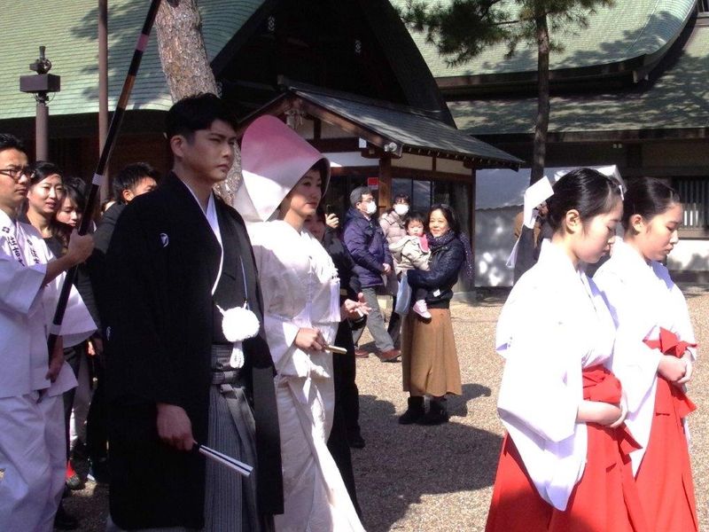 写真は住吉大社で遭遇した結婚式。(本物かデモンストレーションかわかりません)