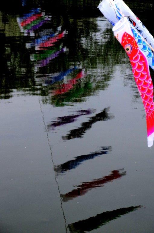 実際の鯉のぼりと川に写った鯉のぼりと、虚像と実像の世界です。