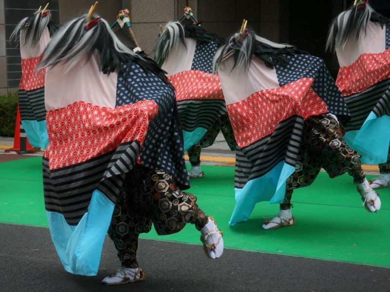 通りのあちこちでパフォーマンスをやっていて、これは県内どこかの獅子舞のようです。