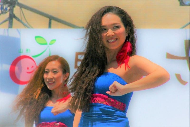 市役所前のステージでは、いろいろなダンスパフォーマンスをやっていましたが、ちょうど通りかかったときにハワイアンダンス教室の踊り。