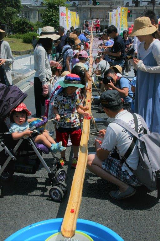 日本一さくらんぼ祭りの目玉は、長さ30mの流しそうめんをパクったような、流しサクランボだそうです。