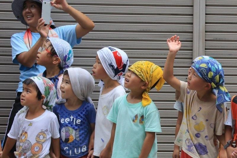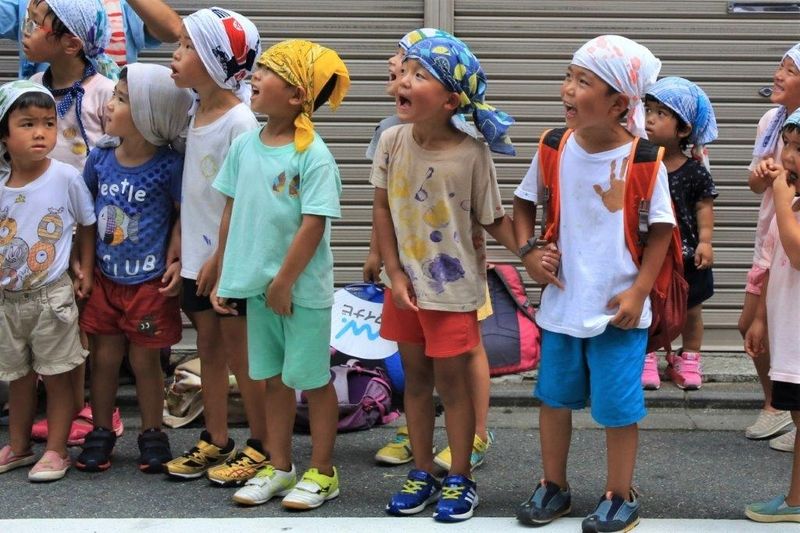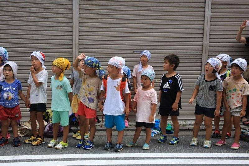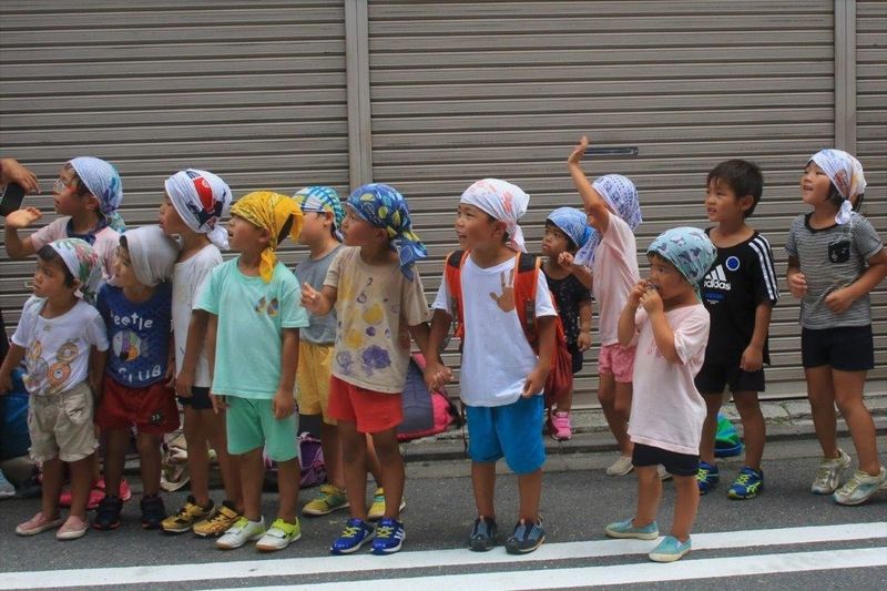その中に、頭に手ぬぐいを被った園児たちを発見。