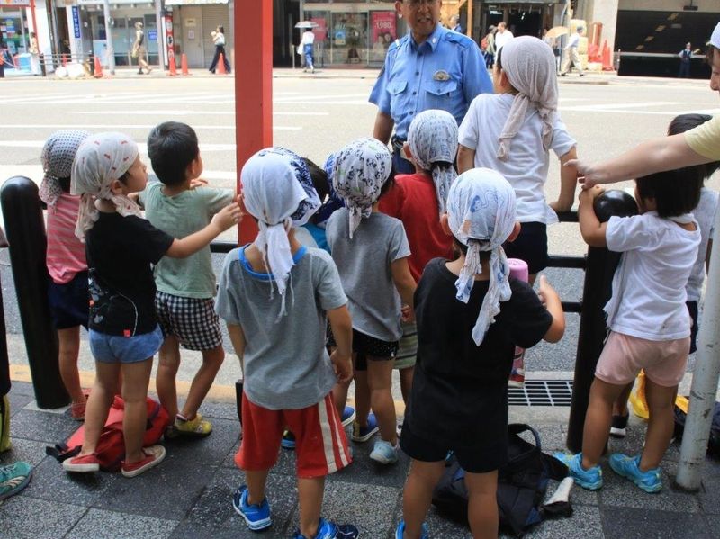 蟷螂山を見てから地下鉄四条駅まで戻る途中で、別の園児たちを見つけました。
