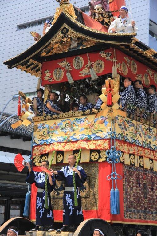 鉾の中はお囃子のオッサンたちがびっしりで、さぞ汗臭いことでしょう。
