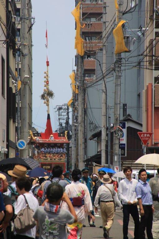 一番写真になるのが狭い新町通をギリギリ通る様子なので、そこだけは暑さを我慢する。
