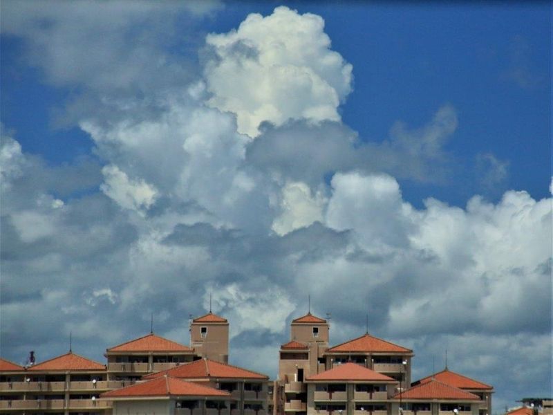 写真は6月にゆいレールから首里方面を見た時の赤い瓦と夏の空。