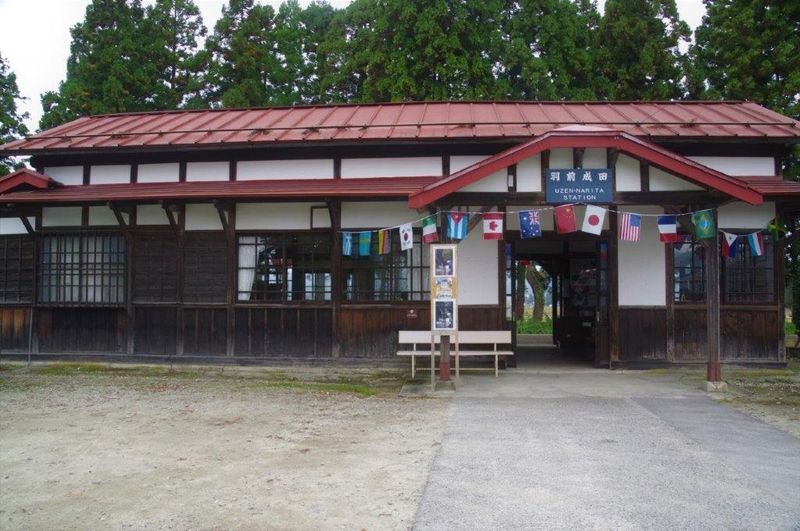 フラワー長井線の羽前成田駅は沿線で最も古い駅舎です。