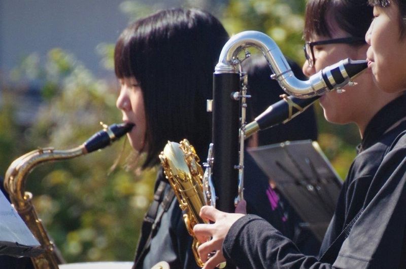 長井駅前では地元高校のスウィングガールズたちが生演奏。