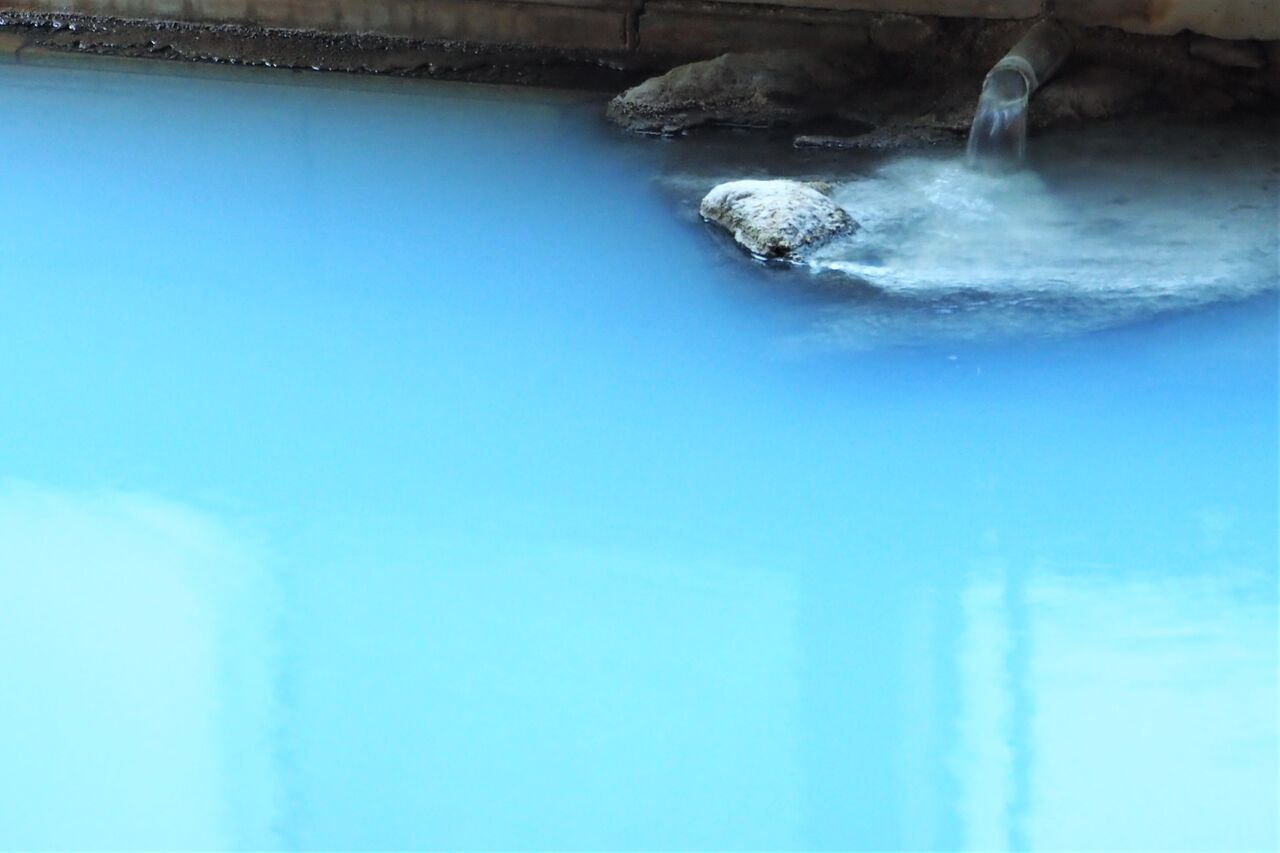 去年の写真ですが、源泉がそのままの状態で浴槽に勢いよく注がれて、本当にここの内湯は最高なんですよ。お湯の勢いは洗面器が5秒で一杯になるくらいです。