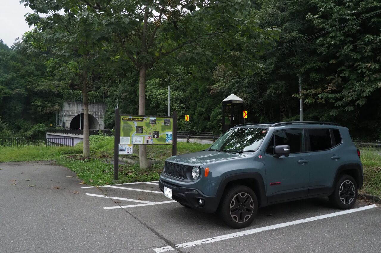 さて案内板にはトンネルのわきがスタートなのでここがA地点とポイントされています。