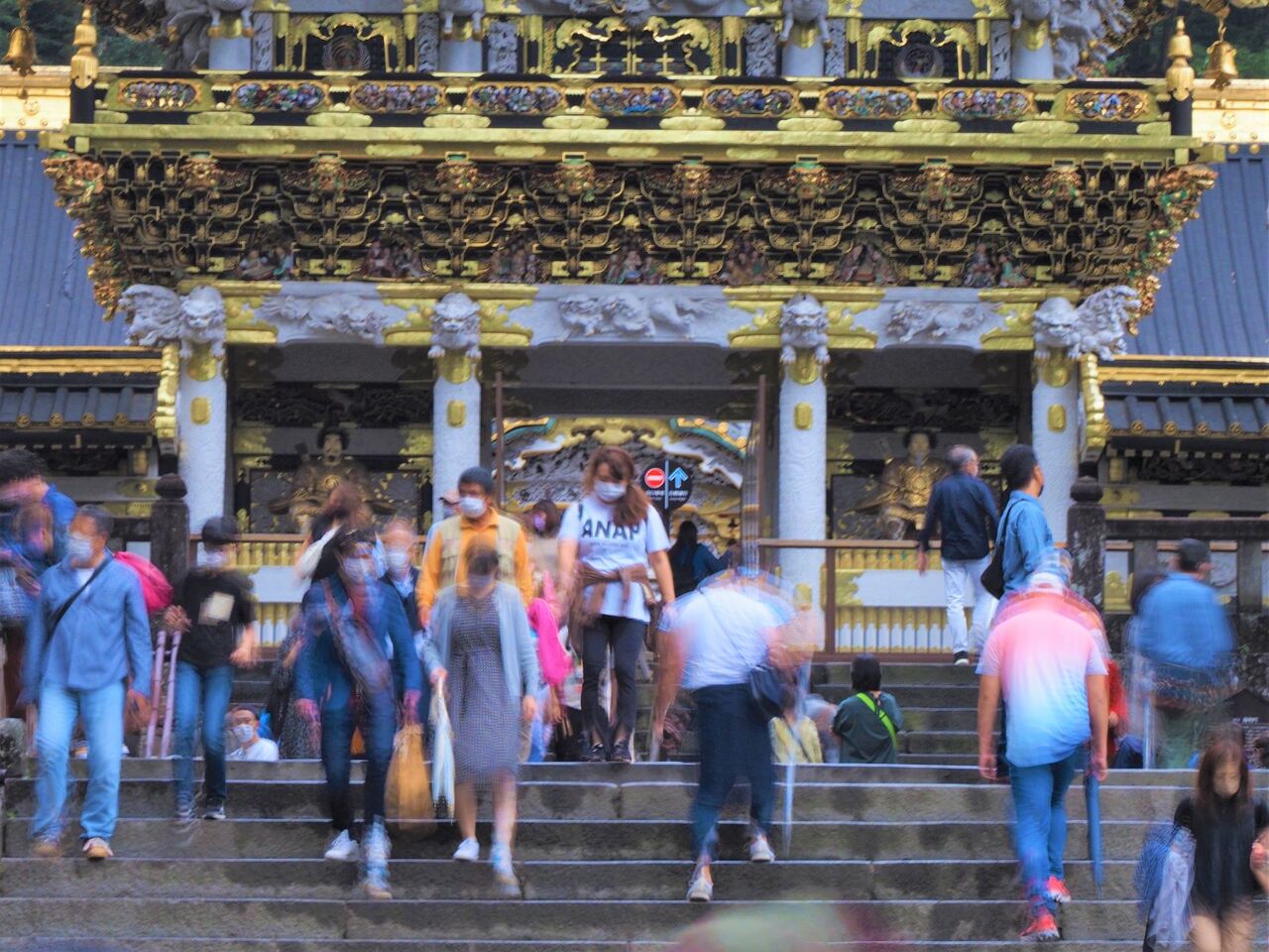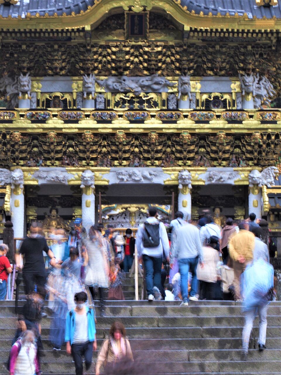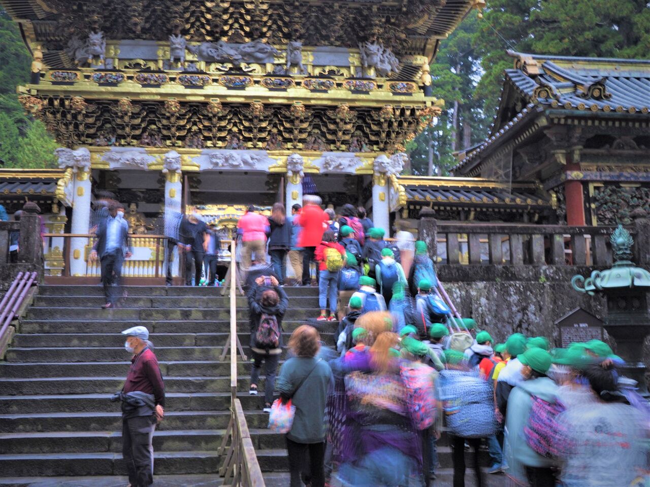 緊急事態宣言解除のおかげなのか、この時も緑の運動帽をかぶった小学生の修学旅行御一行様が何クラスも来て、陽明門の前で定番の集合写真を撮ってから石段を登っていきます。