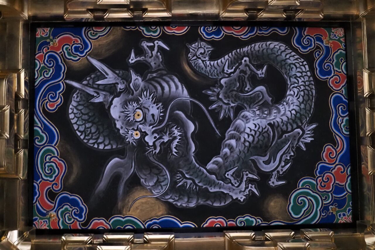 通路には龍の天井画、どうやら昇り龍でしょうか。