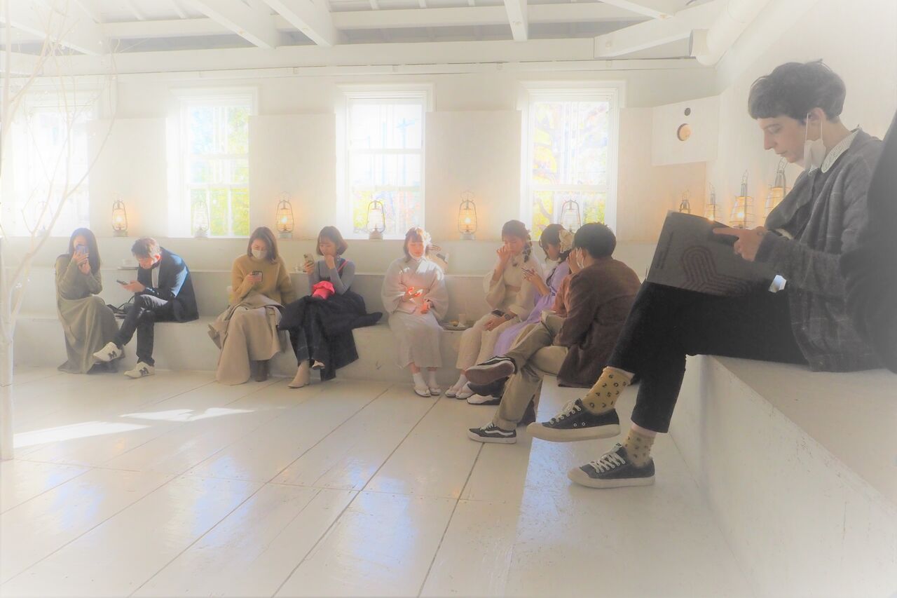 貸衣装の着物姿のおねえさんたちも、裾をだらしなくしながらティータイム。
