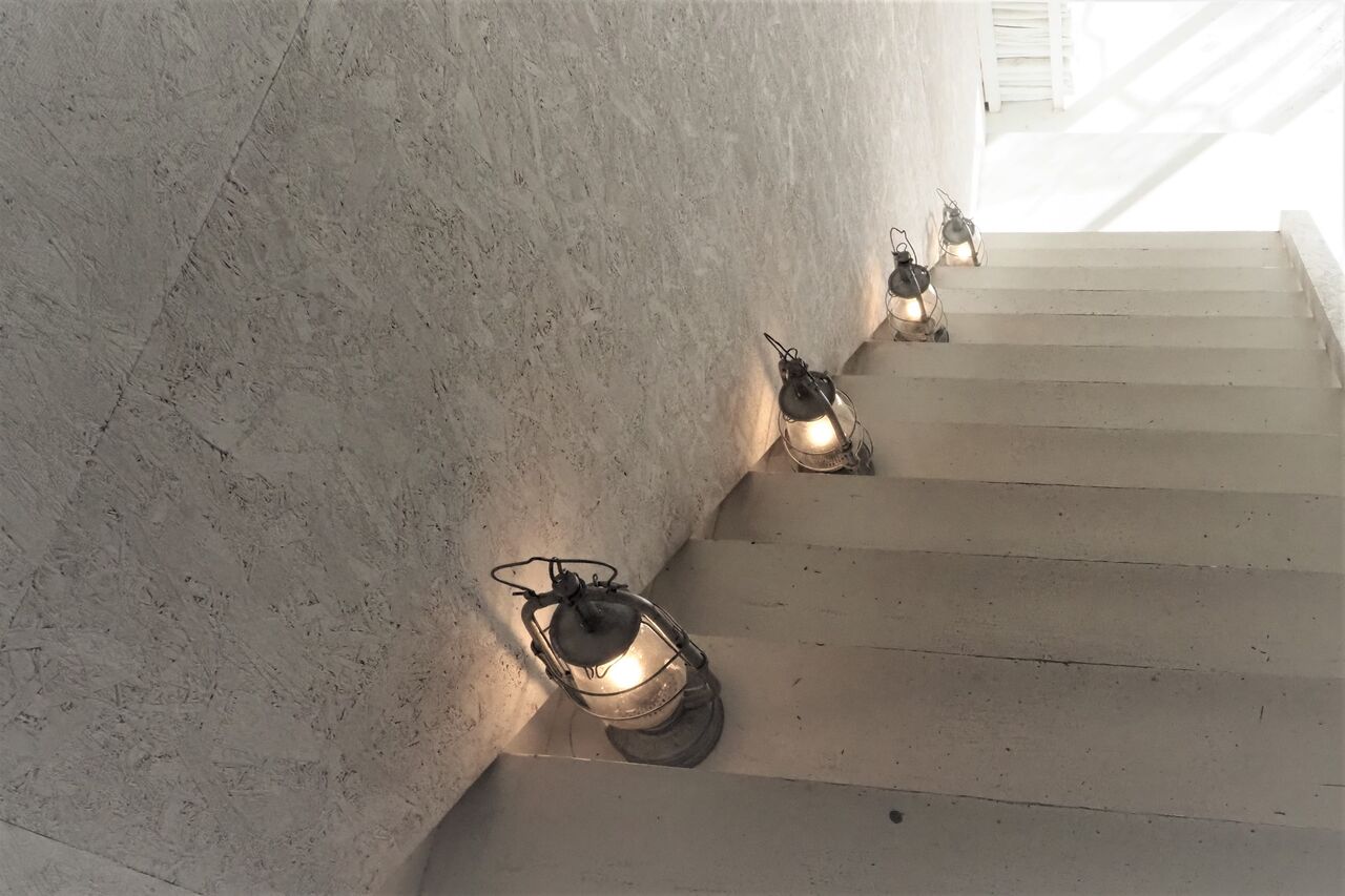 2Fのドリンクスペースには椅子やテーブルは無くて、壁に沿ってぐるりと白い3段の階段が作りつけられていて、皆さんそれぞれ好きな場所に座ります。