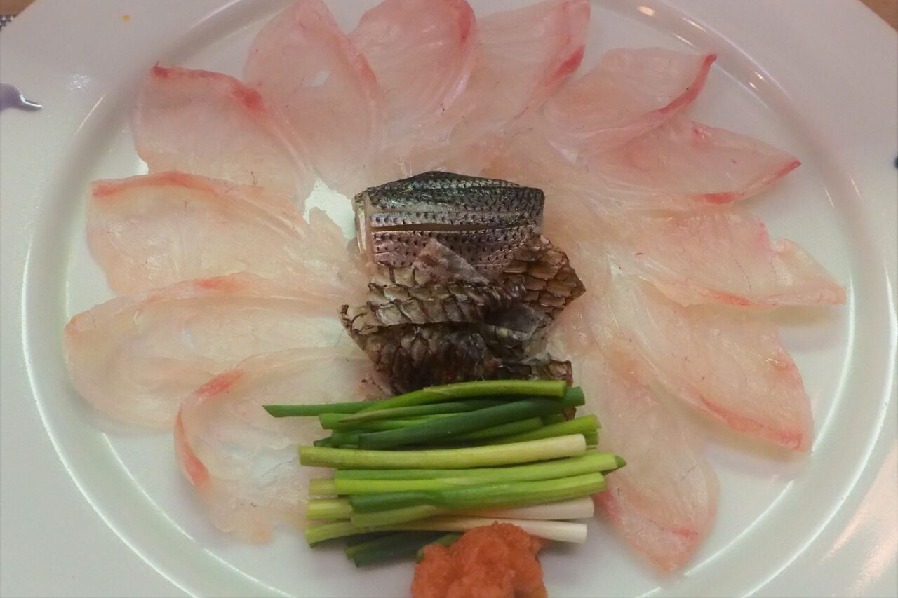 春らしく鯛の薄造りが出てきました。