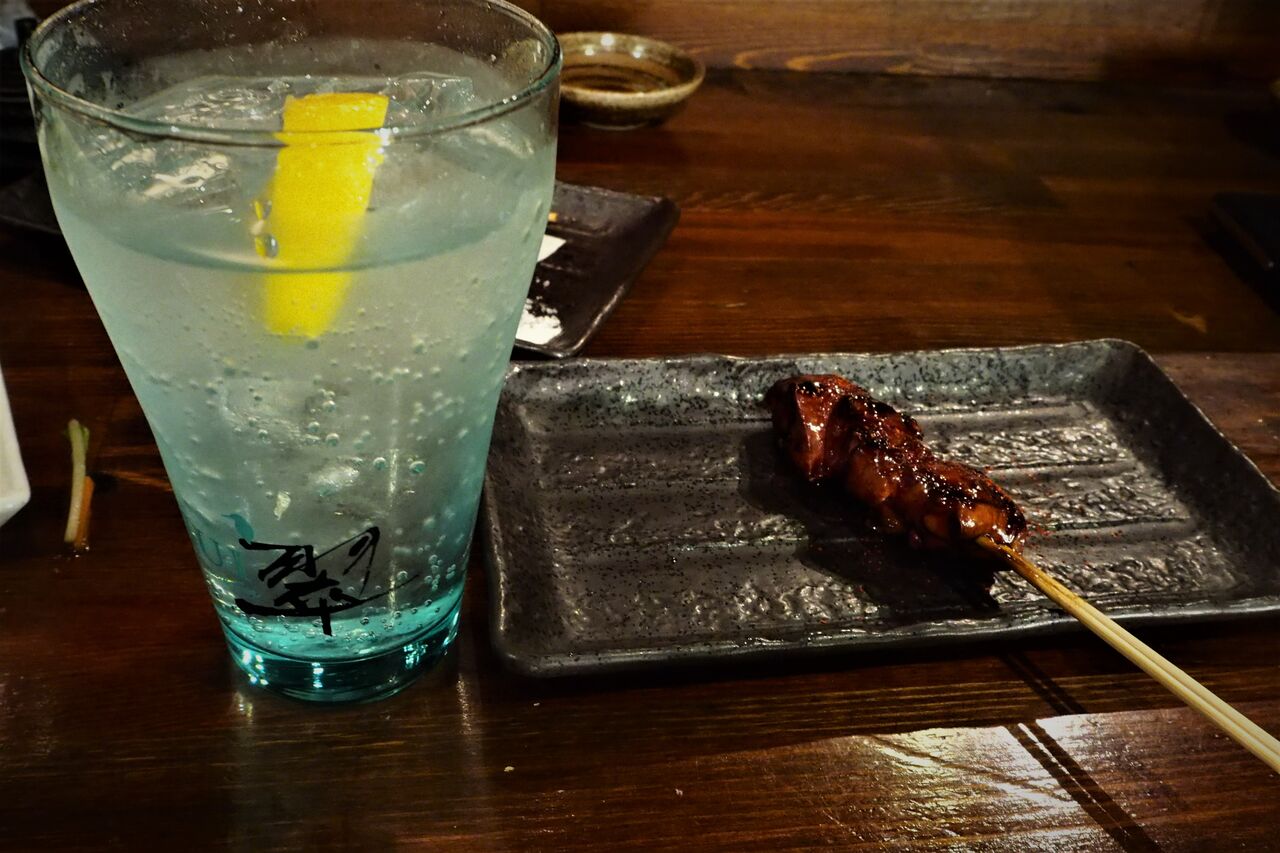 グラスの生ビールを2杯終わるころに、レバーの焼き物が一番最後に出てきたので、久しぶりにジンを飲んでみました。