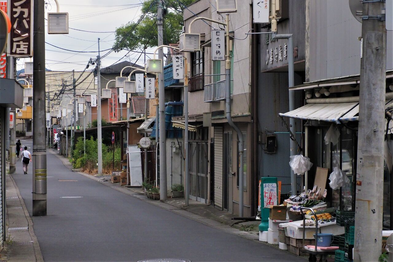 駅前から左手には、昔の昭和時代の街道沿いの商店街があります。