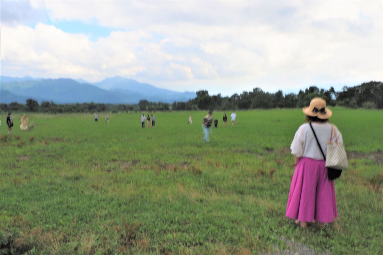 赤いスカートのお母さんがいたのでそれをポイントに、隣にいた子供は画面から外して牧場をパチリ。