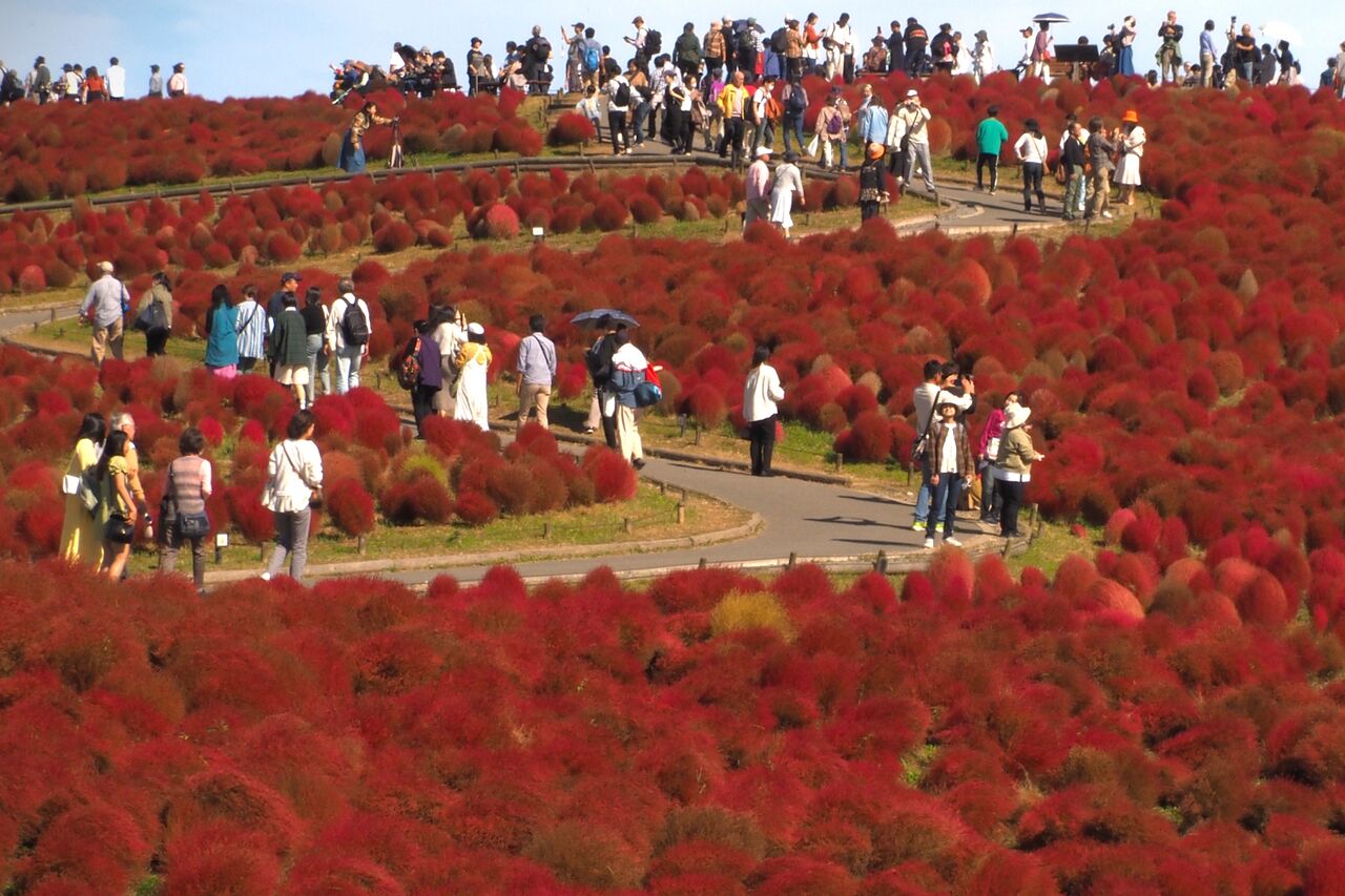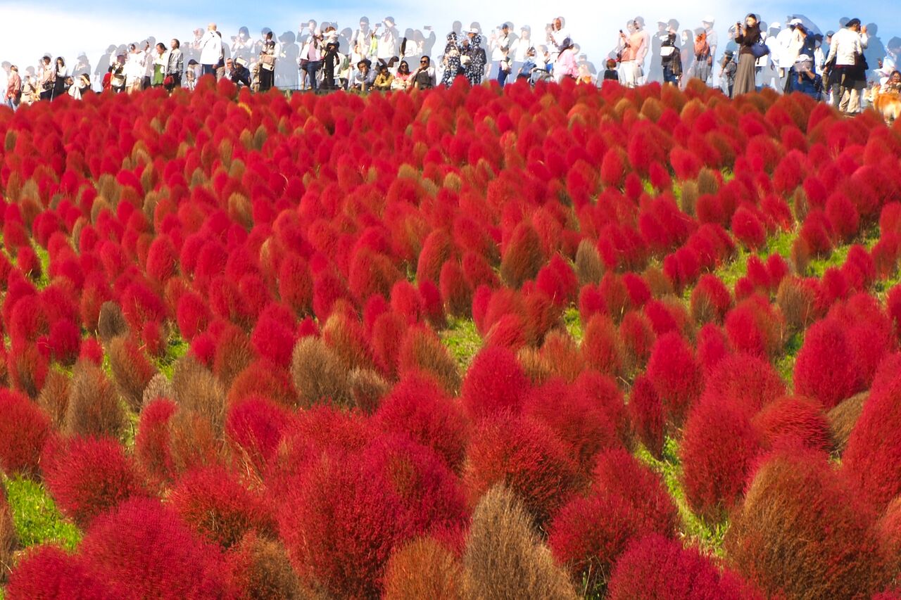 今日も好天なので、ひたち海浜公園のコキアの紅葉グラデーションを撮りに行ってみます。