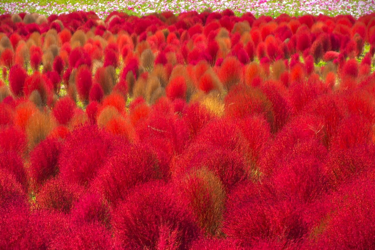 今度はコキアを主役にして、もこもこコキアのグラデーションを撮ってみました。