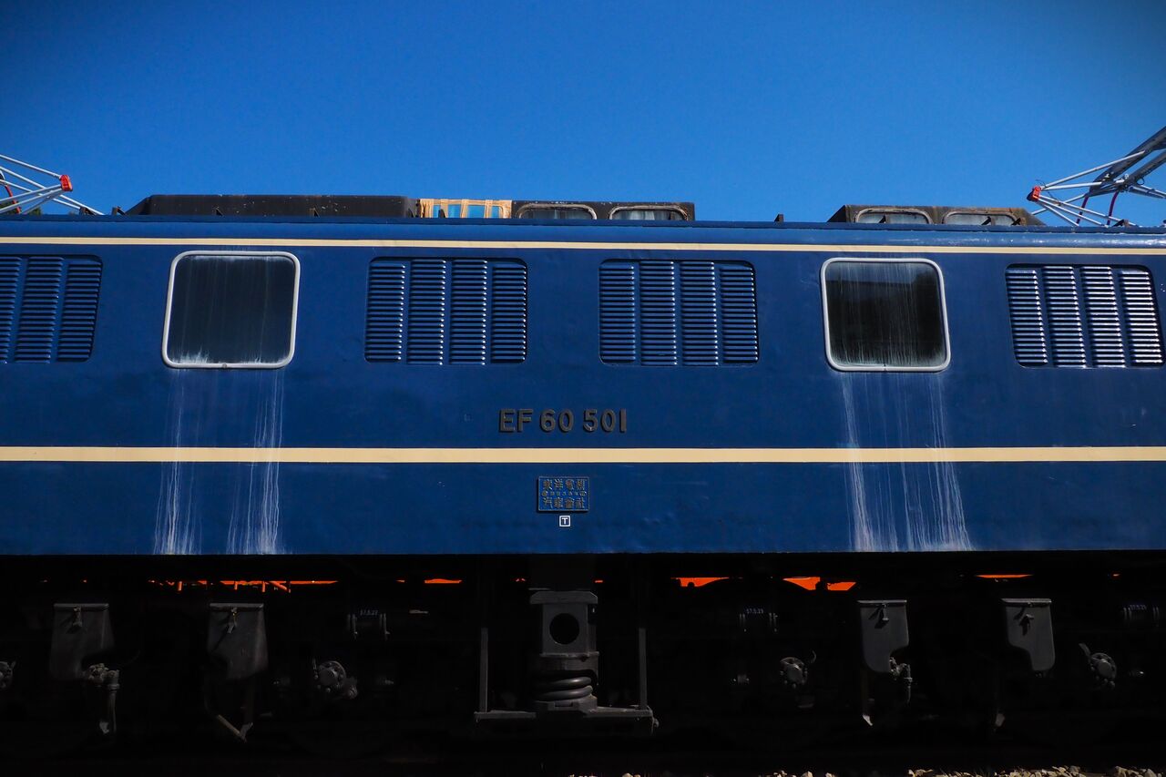 電気機関車の名機EF60ですが、車体のブルーと空の青を並べてみました。
