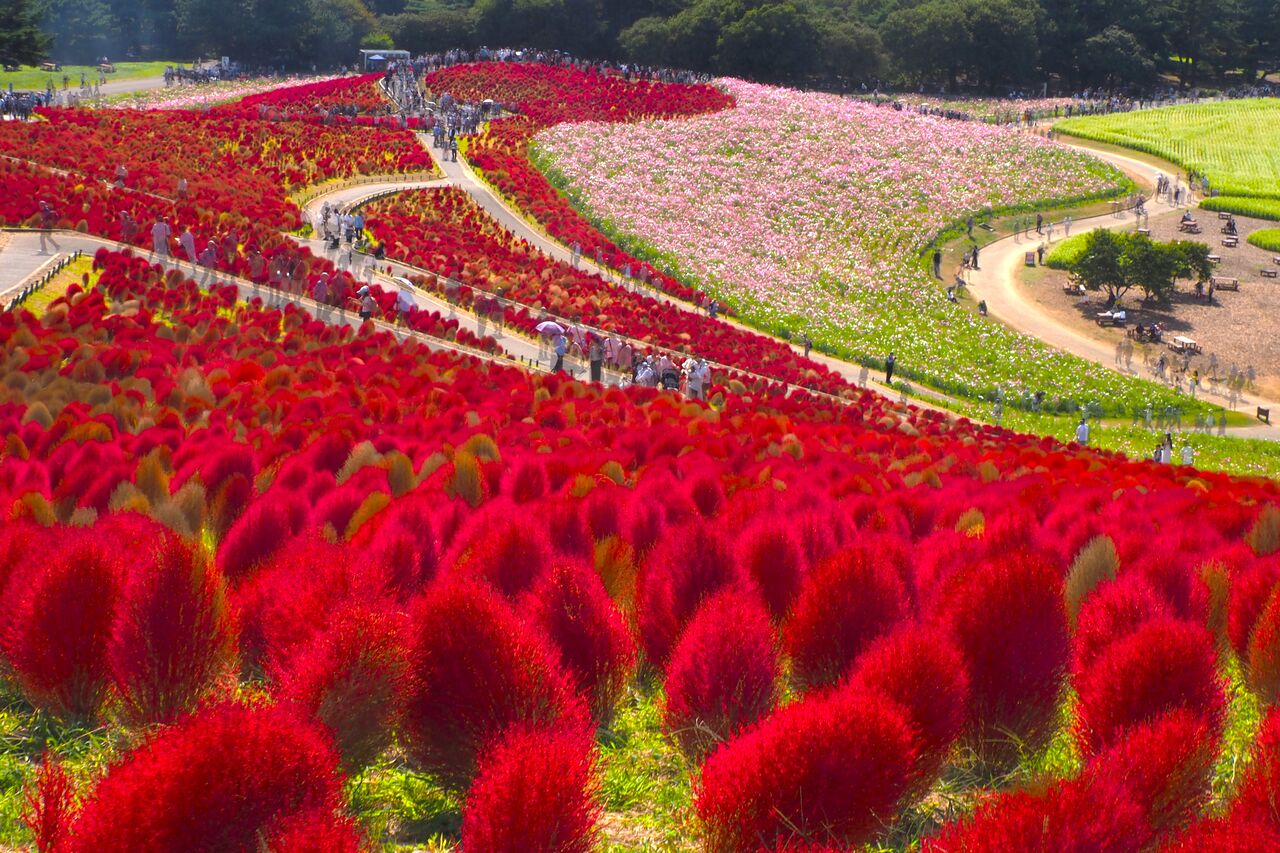 ひたち海浜公園 コスモスとコキア