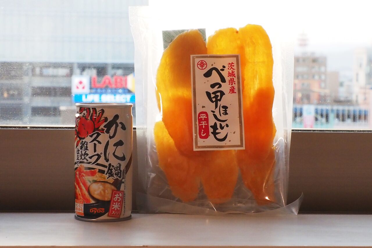 茨城と言えば干し芋、勝田駅の売店で芋の種類がいろいろあって悩みましたが、記念に買ってきました。